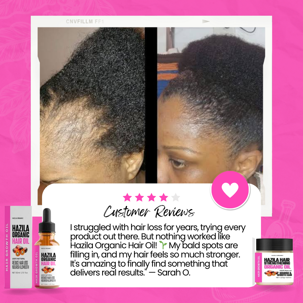 • Proven Effectiveness: Our Hazila hair growth cream and oil are backed by science and proven to effectively target and treat various hair loss issues, including thinning hair and bald spots.